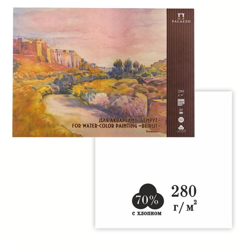 Альбом состоит из 20 листов акварельной бумаги плотностью 280 г/м2. Данная бумага на 70% состоит из хлопка, имеет зернистую поверхность. Наличие хлопка делает работу, написанную на этой бумаге, по-настоящему качественной. Внутренний блок проклеен по корешку с 2-х сторон и имеет основание из жесткого картона для удобства рисования.