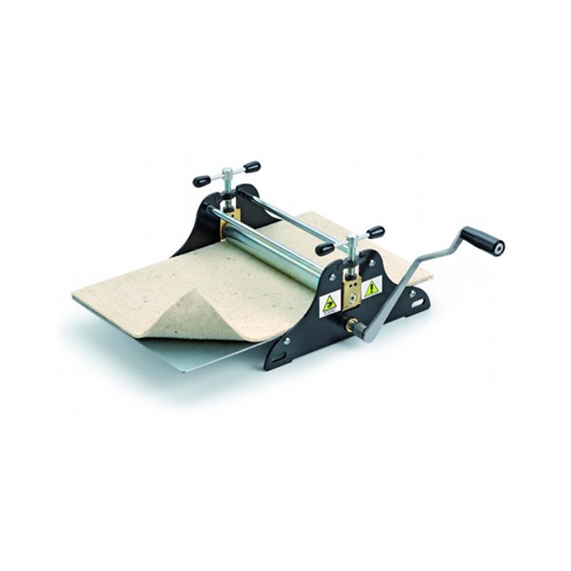 'Офортный станок с ручным управлением. Нижний ролик ребристый для лучшего втягивания, верхний гладкий. Цинковая пластина 26.5х42 см толщиной 3 мм. В комплекте фетр толщиной 2 мм