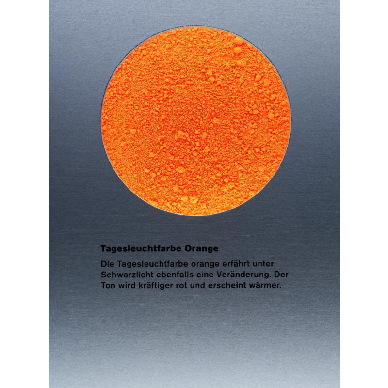 Флуоресцентные краски – это особенно яркие пигменты, которые обладают ярким эффектом даже при обычном дневном свете и могут флуоресцировать под действием УФ-излучения. Благодаря низкой укрывистости, их выгодно наносить на белый фон. Добавление небольшого количества флуоресцентной краски дневного света к другим пигментам увеличивает яркость днем и при освещении УФ-излучением. Благодаря умеренной светостойкости и медленному высыханию эти пигменты редко используются в масляных красках. Хотя флуоресцентные краски дневного света трудно диспергировать в водных связующих, их предпочтительно использовать в акварели или акриле. Низкую светостойкость этих пигментов невозможно улучшить даже с помощью УФ-защитного лака. Если вы хотите использовать флуоресценцию этих пигментов, убедитесь, что связующее не содержит УФ-поглотителя.