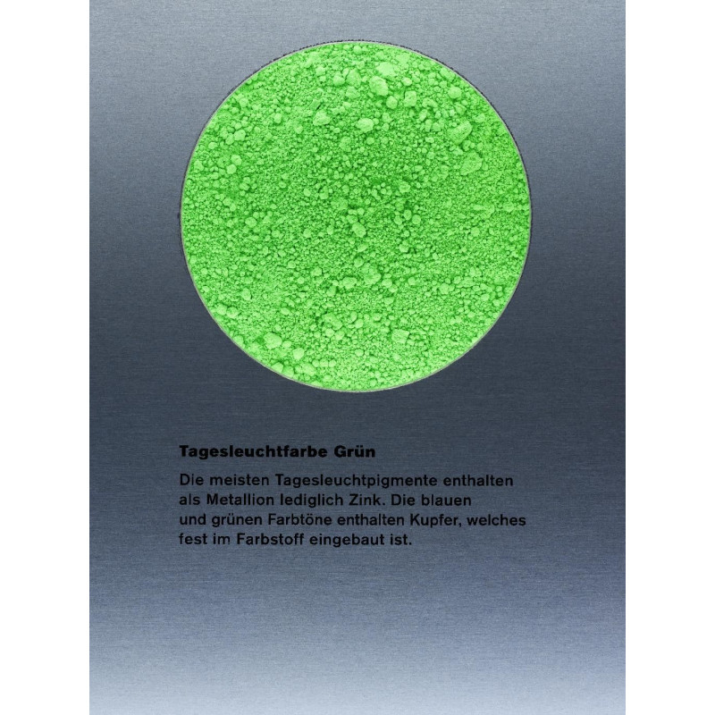 Флуоресцентные краски – это особенно яркие пигменты, которые обладают ярким эффектом даже при обычном дневном свете и могут флуоресцировать под действием УФ-излучения. Благодаря низкой укрывистости, их выгодно наносить на белый фон. Добавление небольшого количества флуоресцентной краски дневного света к другим пигментам увеличивает яркость днем и при освещении УФ-излучением. Благодаря умеренной светостойкости и медленному высыханию эти пигменты редко используются в масляных красках. Хотя флуоресцентные краски дневного света трудно диспергировать в водных связующих, их предпочтительно использовать в акварели или акриле. Низкую светостойкость этих пигментов невозможно улучшить даже с помощью УФ-защитного лака. Если вы хотите использовать флуоресценцию этих пигментов, убедитесь, что связующее не содержит УФ-поглотителя.