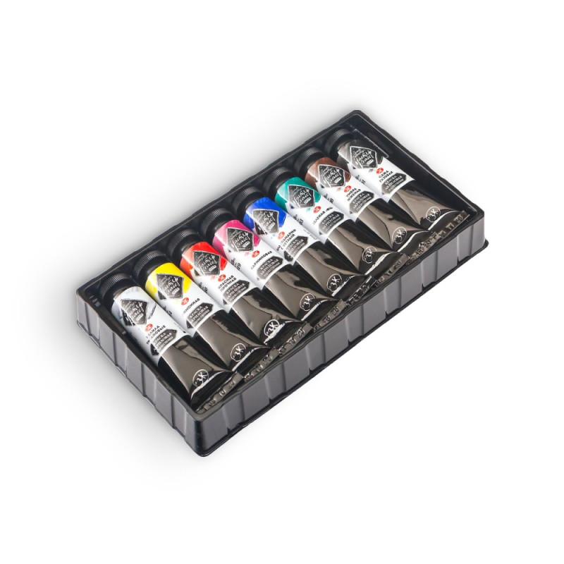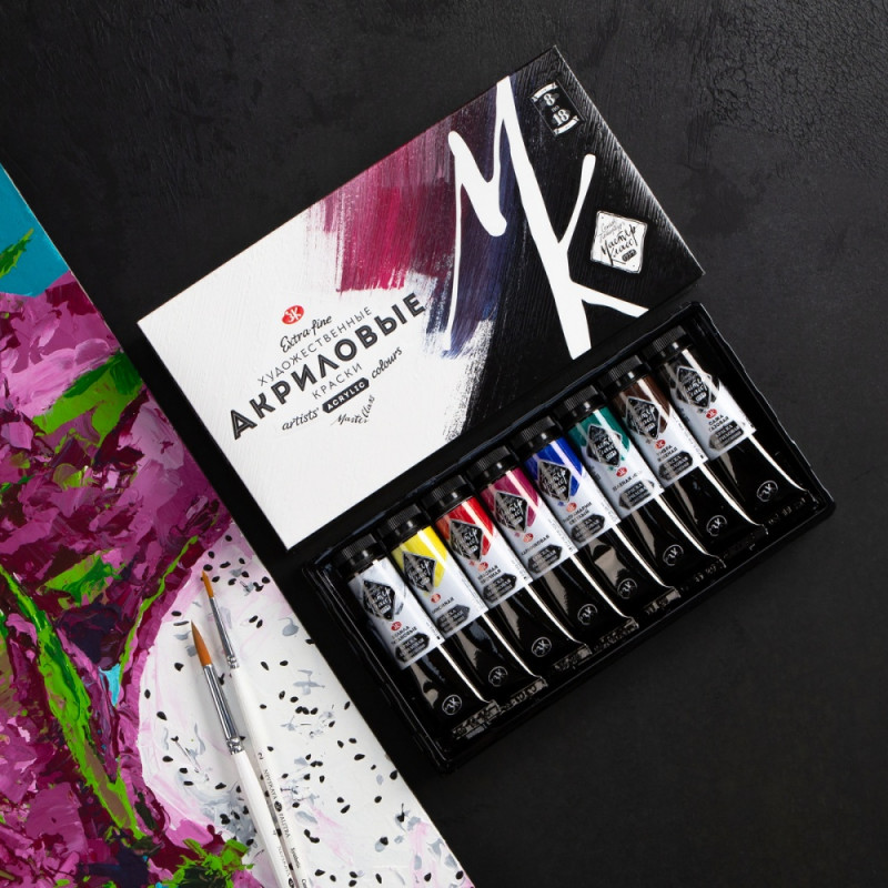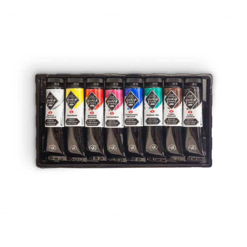 Палитра состоит из базовых цветов, необходимых художнику для работы. Блеск, интенсивность и глубина цвета сохраняются даже после высыхания. Краски имеют высокую пастозность, легко разносятся и смешиваются. Подходят для традиционной живописи и смелых творческих экспериментов.