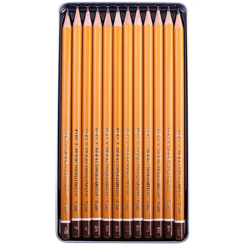 В набор чернографитных карандашей Koh-I-Noor "1500 Technic" входит 12 карандашей разной твердости: