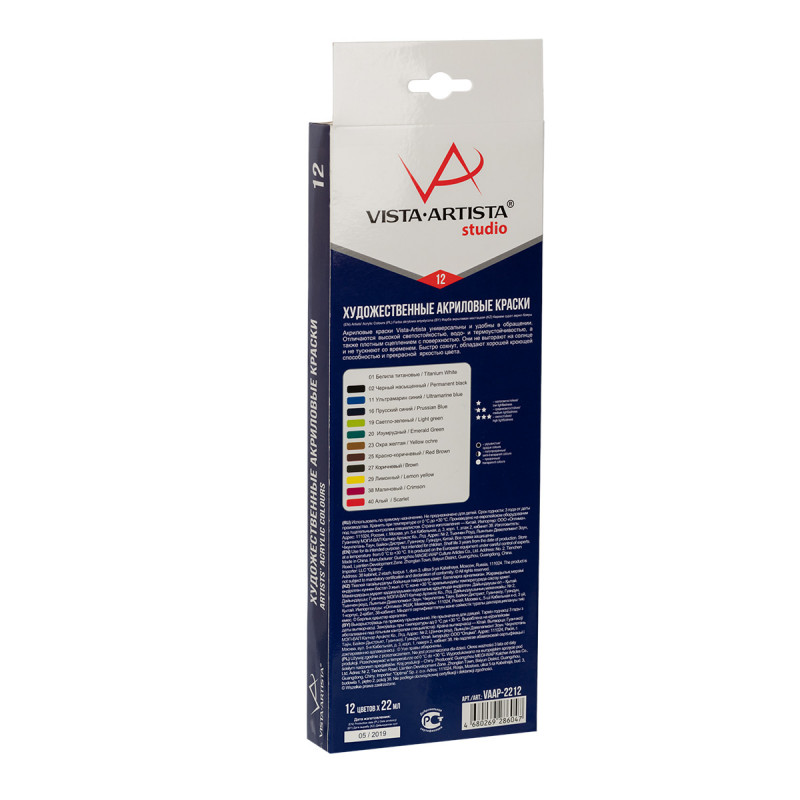 Художественные акриловые краски Vista-Artista Studio универсальны и удобны в обращении. Отличаются высокой светостойкостью, водо- и термоустойчивостью, а также плотным сцеплением с поверхостью. Не выгорают на солнце и не тускнеют со временем. Быстро сохнут, обладают хорошей покрывной способностью и прекрасной яркостью цвета.