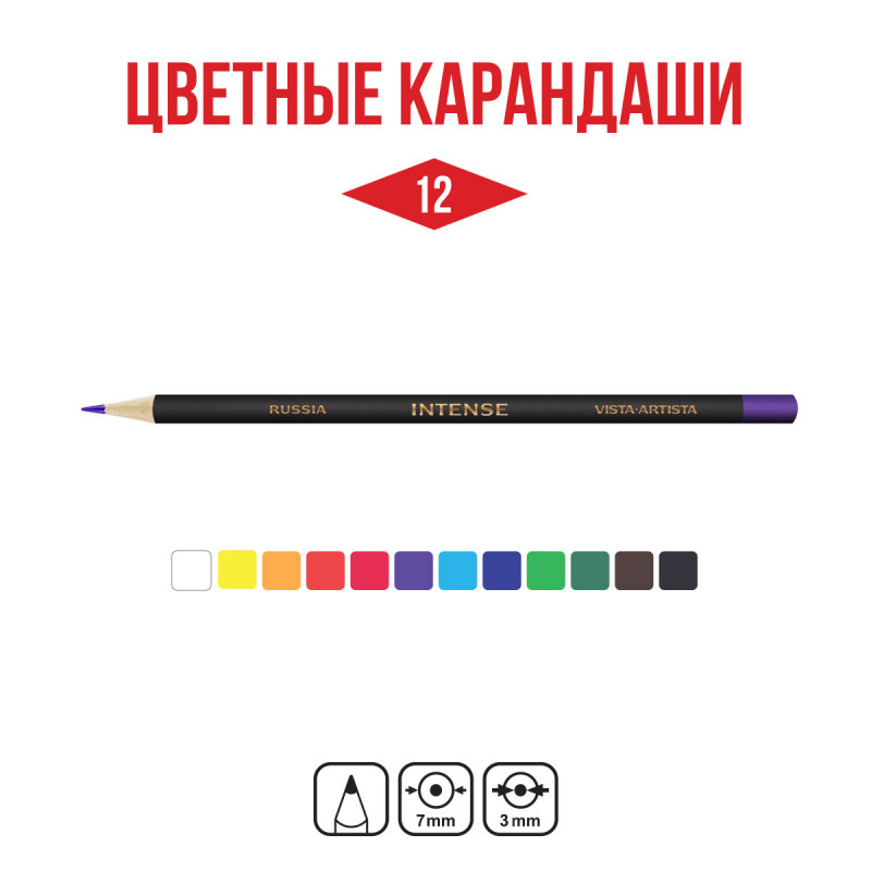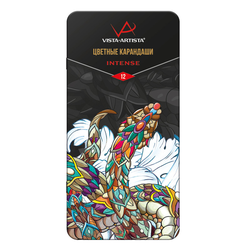 "VISTA-ARTISTA" "INTENSE" - это профессиональные цветные карандаши насыщенных и интенсивных оттенков особой мягкости в металлической коробке.