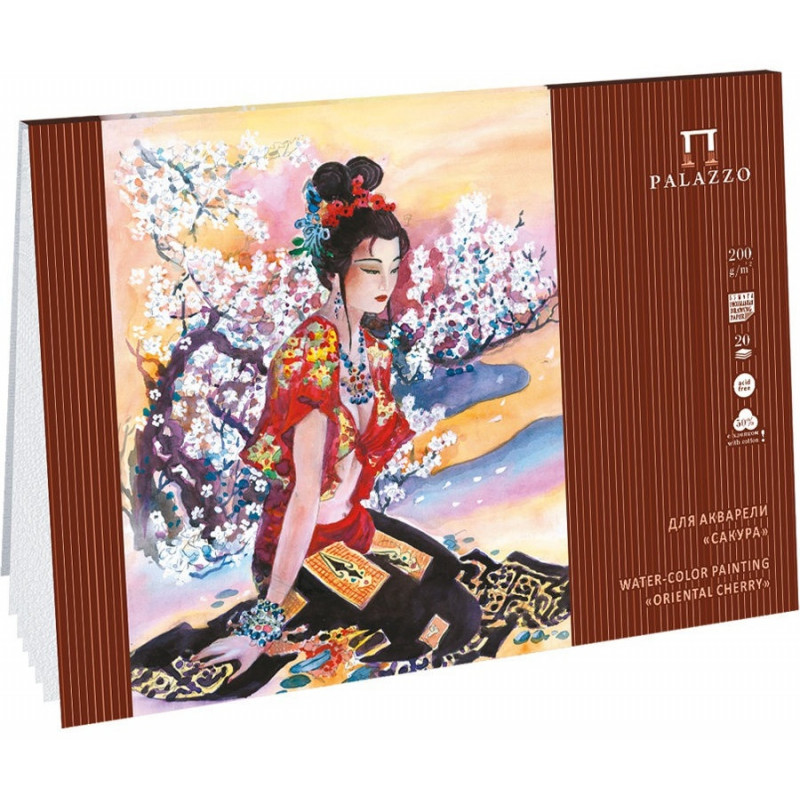 Бумага в планшете "Сакура" состоит на 50% из хлопка, имеет плотность 200 гр/м2 и зернистую поверхность. Наличие хлопка делает работу, написанную на такой бумаге, по-настоящему качественной, краски очень хорошо ложатся на ее поверхность.