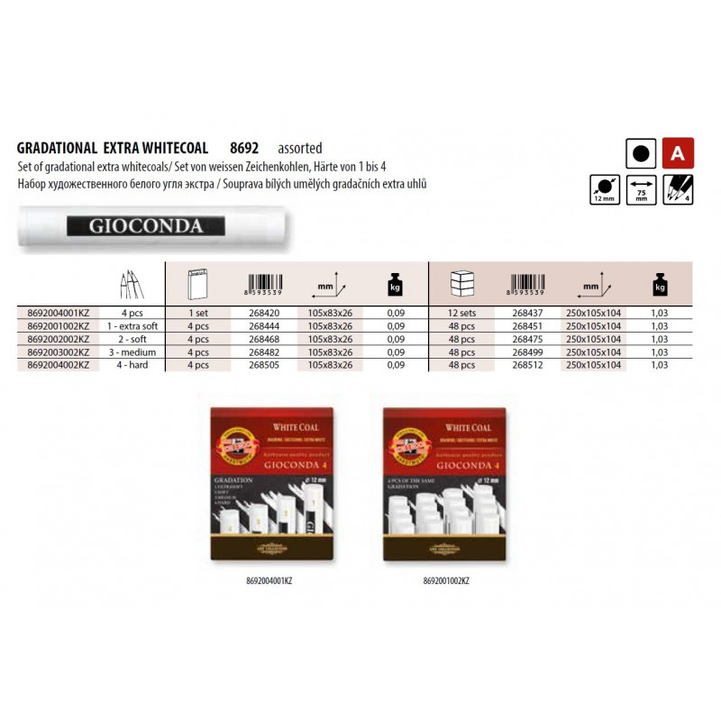 Набор из 4 белых искусственных дополнительных углей диаметром 12 мм и длиной 75 мм. Пакет включает в себя 4 штуки (смесь степеней твердости) 1, 2, 3, 4.Они подходят для рисования на темных поверхностях. Наилучшие результаты достигаются при рисовании на черной бумаге.