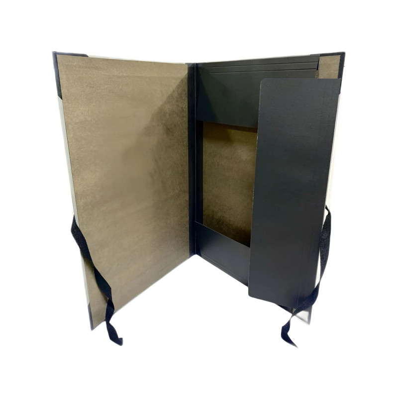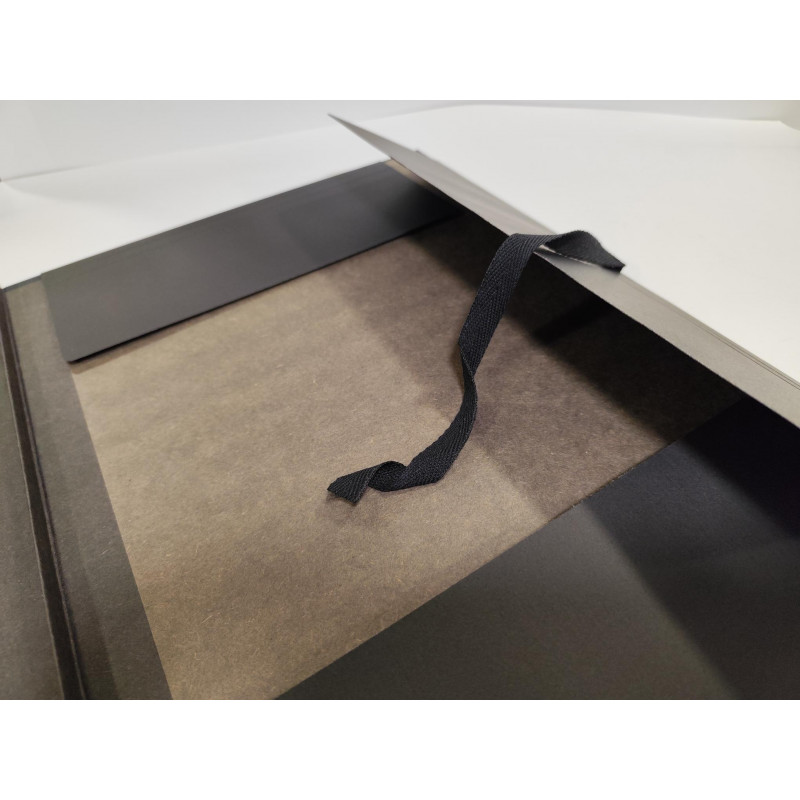 Папка «Черная речка» предназначена для хранения работ, изготовлена из плотного высокопрочного картона, оснащена завязками, что позволяет быстро и плотно закрывать папку и специальными клапанами для защиты работ внутри папки.