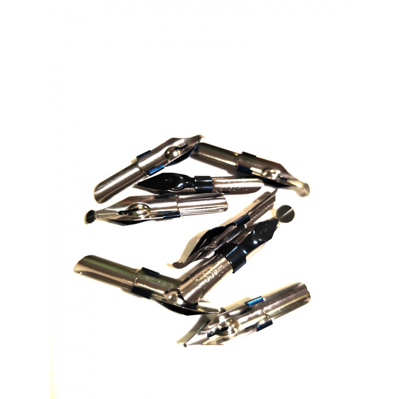 Набор перьев Manuscript для орнаментального письма, позволяет получить все компоненты одной толщины. Никелированные. В набор 8 штук. Толщина с 0,5 мм по 5 мм.