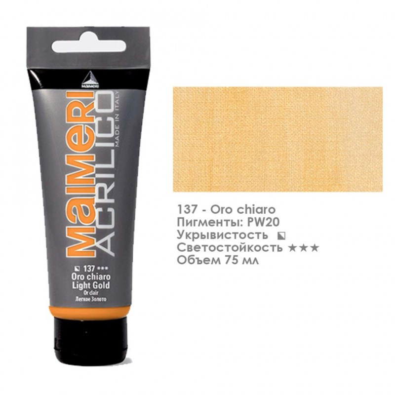Акриловые краски Maimeri ACRILICO – это новое поколение прочных, быстросохнущих красок, способных удовлетворить все потребности и предпочтения художников, использующих их. Отличный инструмент для профессиональных художников и студентов художественных вузов.