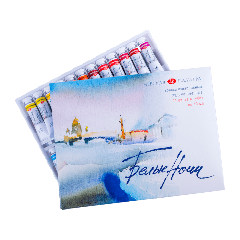 Акварель «Белые ночи» выпускается в кюветах и в тубах в наборах различной комплектации и поштучно.
